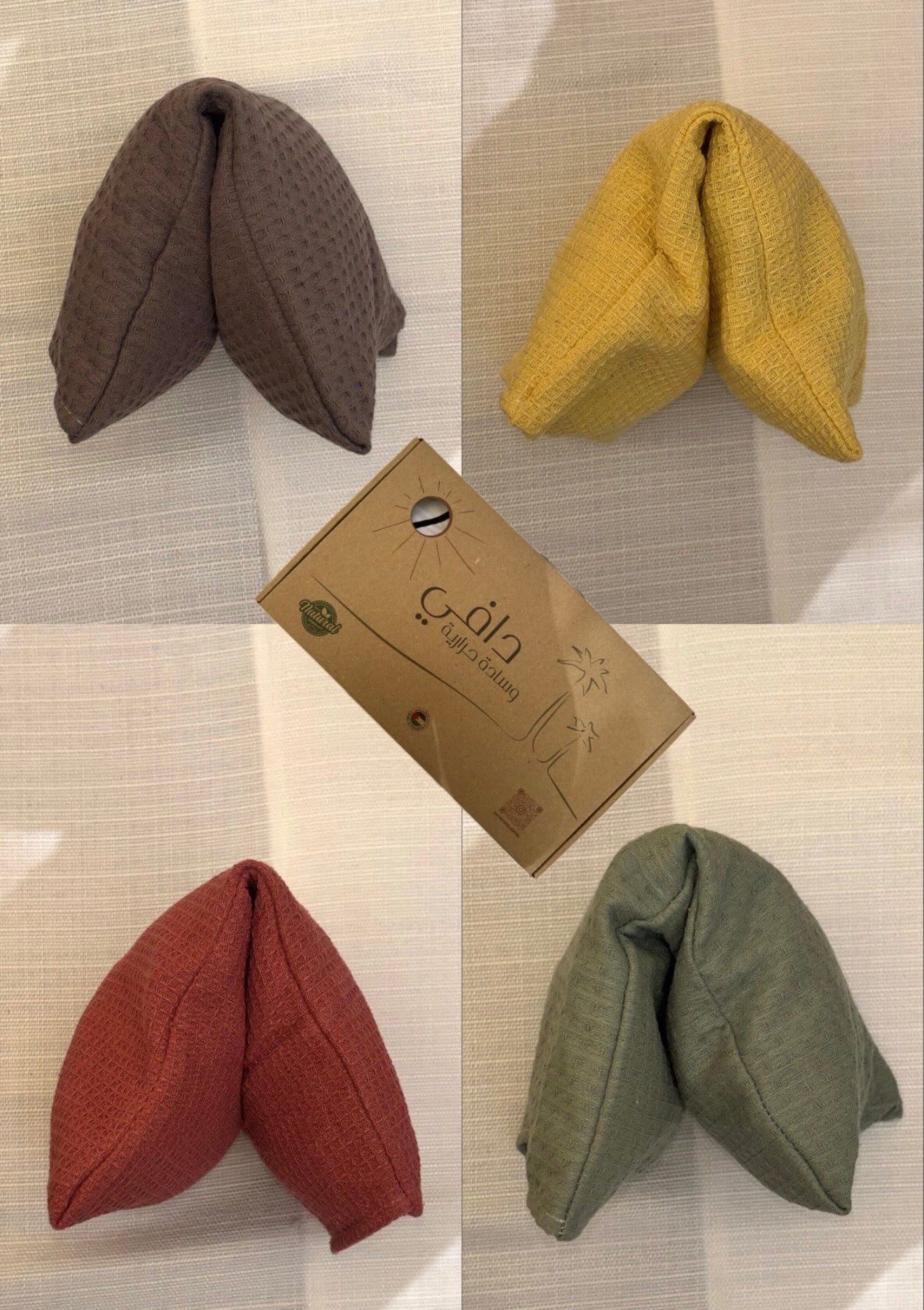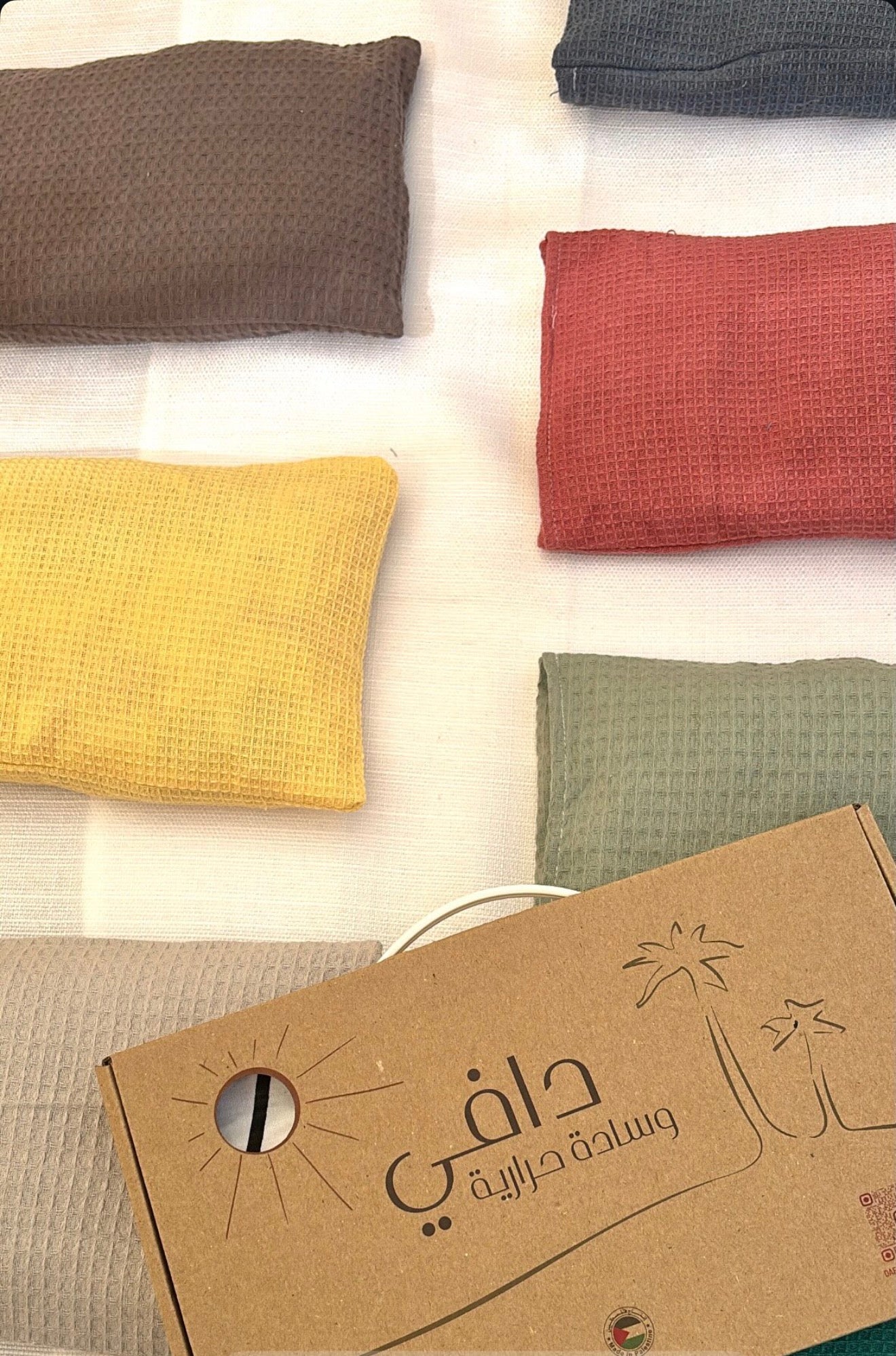 هي وسادة تدفئة طبيعية مبتكرة، محشوة ببذور التمر الفلسطينية المختارة بعناية، لتوفر لك دفئًا مريحًا وعلاجًا حراريًا آمنًا وفعّالًا، كبديل صحي وحديث عن قِربة الماء الساخن التقليدية وقِرب السيليكون.